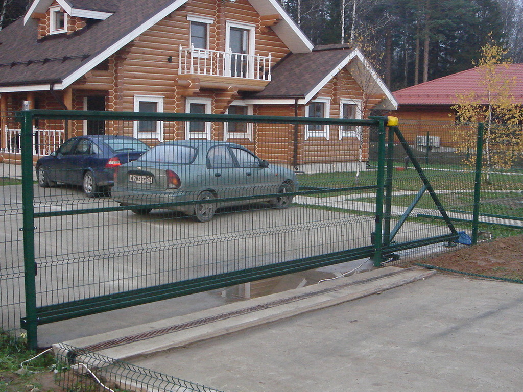 Откатные ворота из евроштакетника на винтовых сваях (цена на бетонном основании +20000р)